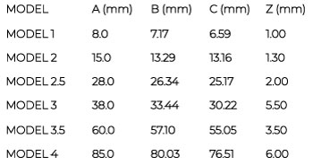 Ključne dimenzije i ekvivaletne vrednosti za ROLLA-V prizme