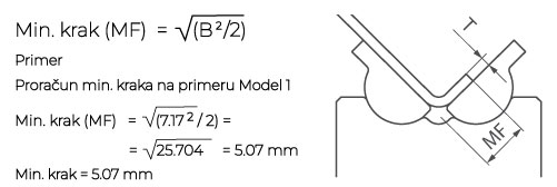 • Minimalna dužina kraka značajno zavisi od pravougaonosti ivice komada, odnosno od toga koliko je rub pravilno pripremljen.